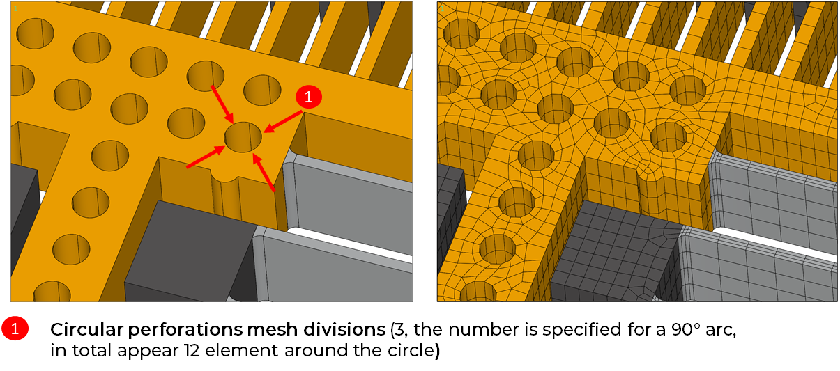 - Circular perforations are defined by 4 circular lines which span a 90 degrees arc.